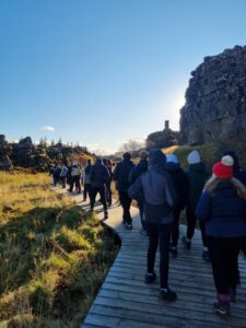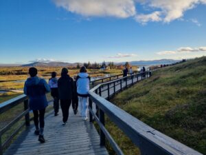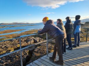 Day 1 – After arriving at Keflavík Airport, pupils set off straight away for their first destination: the Bridge Between Continents. This symbolic footbridge spans one of the fissures formed by diverging tectonic plates. Measuring 18 metres in length and covering a gap six metres deep, it offered a fascinating introduction to Iceland’s unique geology.