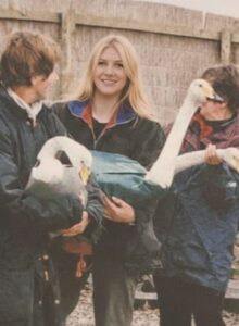 The accompanying photo shows Mrs Otterburn during her time at the Wildfowl and Wetlands Trust, collecting data on Whooper Swans. She recalls weighing, measuring and adding leg rings to individuals before releasing them back onto the reserve as part of vital research into migration, pairing, population dynamics and overall health.