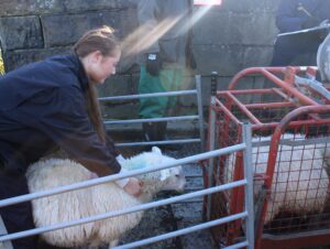 Some of the photos you see here are of last year’s lambs. They are not so little anymore! Today’s focus was weighing the current lambs to monitor their growth and carrying out health checks to make sure everything is on track.